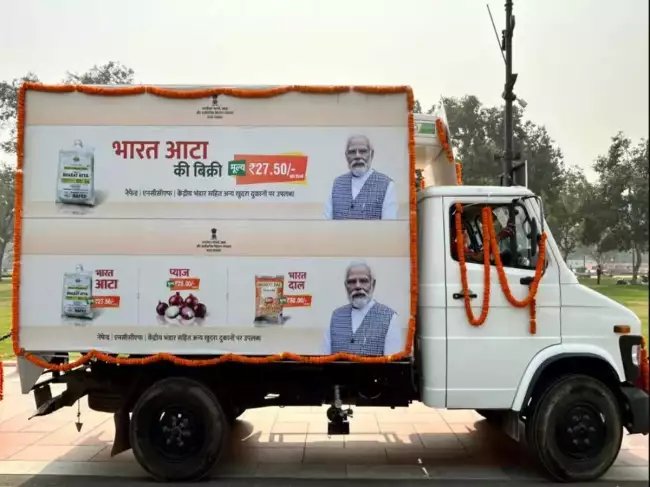 ֆ:इसका उद्देश्य आम उपभोक्ताओं को किफायती दर पर आटा उपलब्ध कराना है। केंद्रीय/राज्य सहकारी एजेंसियों द्वारा भारत आटे के अलावा, फिजीकल/मोबाइल खुदरा दुकानों के माध्यम से सब्सिडी वाली भारत दाल (चना दाल) और प्याज भी बेची जा रही है। सामान्य उपभोक्ताओं को 2,75,936 मीट्रिक टन भारत आटा, 2,96,802 मीट्रिक टन भारत दाल (चना) और 3,04,40,547 किलोग्राम प्याज रियायती दरों पर बेचा गया है। सरकार ने आम उपभोक्ताओं के लिए ‘भारत’ ब्रांड के तहत प्रति किलोग्राम 29 रुपये अधिकतम खुदरा मूल्य की दर पर चावल की खुदरा बिक्री भी शुरू की है। भारत सरकार के खाद्य एवं सार्वजनिक वितरण विभाग ने दिनांक 16.12.2023 के आदेश के द्वारा मूल्य स्थिरीकरण कोष (पीएसएफ) से 435 रुपये/क्विंटल की सब्सिडी की अनुमति देने के बाद एफसीआई को 2150 रुपये /क्विंटल के मौजूदा आरक्षित मूल्य पर, नेफेड/एनसीसीएफ/केंद्रीय भंडार को भारत आटा के लिए गेहूं का प्रभावी निर्गम मूल्य 1715 रुपये/क्विंटल रखने का निर्देश दिया।