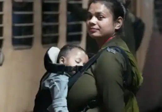 ֍:1 साल के बच्चे के साथ स्टेशन पर ड्यूटी कर रही रीना§ֆ:सोशल मीडिया पर इस तस्वीर ने सभी का ध्यान अपनी ओर खींच लिया है. इसमें मां के रूप में एक योद्धा को दिखाया गया है, जिसमें वह अपने छोटे बच्चे को छाती से बांधकर हाथ में लठ लिए नई दिल्ली रेलवे स्टेशन पर अपनी ड्यूटी कर रही है. यह तस्वीर शनिवार के दौरान पोस्ट किया गया जब नई दिल्ली रेलवे स्टेशन पर भगदड़ मच गई और 18 लोगों की मौत हो गई. इसके अलावा कई लोग घायल भी हुए. अब बच्चा लिए साहसी मां बच्चे के साथ ड्यूटी निभा रही है और यात्रियों की सुरक्षा कर रही है.§֍:सोशल मीडिया पर हुई तारीफ§ֆ:इस तस्वीर को सोशल मीडिया पर खूब रिपोस्ट किया गया. ऐसे में यूजर्स ने तस्वीर को खूब नवाजा और तारीफ के पुल बांध दिए. ऐसे में एक यूजर ने पोस्ट कर लिखा, मां तो मां होती है, इसे हराना किसी के बस की बात नहीं है. एक और यूजर ने लिखा…मां से बड़ा योद्धा कोई नहीं. किस्मत वालों के सिर पर मां का साया होता है. तो वहीं एक और यूजर ने लिखा…आज मुझे मेरी मां बहुत याद आ रही है.§नई दिल्ली रेलवे स्टेश पर ऐसा दृश्य देखने को मिला है, जिसने सोशल मीडिया पर खूब सुर्खियां बंटोर ली हैं. लगातार सोशल मीडिया पर एक फोटो वायरल हो रहा है, जिसमें एक महिला पुलिस कांस्टेबल नई दिल्ली रेलवे स्टेशन पर बच्चे को छाती से बांध कर ड्यूटी करती नजर आ रही हैं.