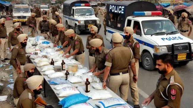 ֍:किन जिलों में हुई छापेमारी?§ֆ:दरअसल, यह तलाशी अभियान उन 10 जिलों में चलाया गया, जिनकी सीमाएं चार अन्य राज्यों और चंडीगढ़ से लगती हैं. पठानकोट, श्री मुक्तसर साहिब, फाजिल्का, रोपड़, एसएएस नगर (मोहाली), पटियाला, संगरूर, मानसा, होशियारपुर और बठिंडा ये वो जिले हैं जिसमें छापेमारी की गई.§֍:वाहनों की जांच और जब्ती§ֆ:पंजाब के विशेष पुलिस महानिदेशक (Special DGP) अर्पित शुक्ला ने बताया कि पुलिस ने 3 हजार 938 वाहनों की जांच की, जिनमें से 471 को यातायात नियमों के उल्लंघन के चलते चालान किया गया. जबकि 11 वाहनों को जब्त कर लिया गया. पुलिस के ‘कोर्डन एंड सर्च ऑपरेशन’ (Cordon and Search Operation) के तहत शुक्रवार को राज्यभर में 86 एफआईआर दर्ज की गईं और 111 लोगों को गिरफ्तार किया गया. इस हफ्ते अब तक कुल 884 नशा तस्करों को गिरफ्तार किया जा चुका है.§पंजाब पुलिस ने नशा तस्करी और शराब की तस्करी के खिलाफ बड़े पैमाने पर अभियान चलाते हुए शुक्रवार को राज्यभर में 687 स्थानों पर छापेमारी की. इस दौरान पुलिस ने 111 लोगों को गिरफ्तार किया. पंजाब के पुलिस महानिदेशक (DGP) गौरव यादव ने बताया कि इस कार्रवाई में 1 हजार से अधिक पुलिसकर्मियों ने भाग लिया और 10 जिलों के 84 एंट्री और एग्जिट प्वाइंट्स पर वाहनों की सघन जांच की गई.