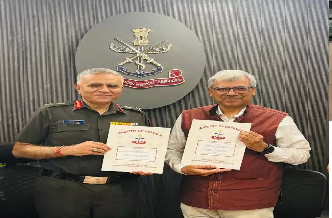 §सशस्त्र बल चिकित्सा सेवा (एएफएमएस) ने सहयोगात्मक अनुसंधान एवं प्रशिक्षण कार्यक्रम के लिए 23 अप्रैल, 2024 को भारतीय चिकित्सा अनुसंधान परिषद (आईसीएमआर) के साथ एक समझौता ज्ञापन (एमओयू) पर हस्ताक्षर किए हैं। आईसीएमआर के स्वास्थ्य अनुसंधान एवं महानिदेशक विभाग के सचिव डॉ. राजीव बहल और सशस्त्र बल चिकित्सा सेवा के महानिदेशक लेफ्टिनेंट जनरल दलजीत सिंह ने इस समझौता ज्ञापन पर हस्ताक्षर किए हैं।