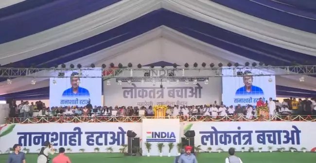 ֍:’सुनीता ने कहा कि केजरीवाल करोड़ों लोगों के दिल में’§ֆ:सुनीता ने कहा कि केजरीवाल करोड़ों लोगों के दिल में बसे हैं. सुनीता ने कहा कि अगर आप (जनता) ‘इंडिया’ गठबंधन को मौका देंगे तो हम एक महान राष्ट्र का निर्माण करेंगे. उन्होंने कहा कि भारत माता पीड़ा में हैं. उन्हें तब दुख होता है जब लोगों को निर्बाध बिजली नहीं मिलती है या जब किसी की उपचार के अभाव में मृत्यु हो जाती है.§֍:लोकसभा चुनाव में ‘मैच फिक्स’ करने की कोशिश- राहुल गांधी §ֆ:कांग्रेस नेता राहुल गांधी ने राहुल गांधी ने रैली के मंच से प्रधानमंत्री नरेंद्र मोदी पर निशाना साधते हुए कहा कि लोकसभा चुनाव में ‘मैच फिक्स’ करने की कोशिश की जा रही है. कांग्रेस सबसे बड़ी विपक्षी पार्टी है, उसके सभी खाते फ्रीज कर दिए गए हैं. यह किस तरह का चुनाव है. गरीबों से संविधान को छीनने के लिए प्रधानमंत्री मोदी और साठगांठ करने वाले तीन-चार पूंजीपतियों द्वारा मैच फिक्स किया जा रहा है. संविधान लोगों की आवाज है, जिस दिन यह समाप्त होगी, देश खत्म हो जाएगा. बीजेपी के एक सांसद का जिक्र करते हुए कहा कि वो कहते हैं कि हम (बीजेपी) 400 सीट मिलने पर संविधान में बदलाव करेंगे. ऐसा राय परखने के लिए कहा गया था. अगर आपने पूरी ताकत से मतदान नहीं किया, तो उनके ‘मैच फिक्स’ करने की कोशिश सफल हो जाएगी. अगर वे सफल होते हैं तो संविधान बर्बाद हो जाएगा.