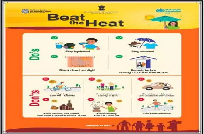 §ֆ:समीक्षा बैठक में यह बताया गया कि केंद्रीय स्वास्थ्य सचिव द्वारा हाल ही में 29 फरवरी, 2024 को सभी मुख्य सचिवों को परामर्श जारी किया गया है, जिसमें गर्मी के प्रभाव और मामलों के प्रबंधन के लिए स्वास्थ्य सुविधाओं की कारगर तैयारी के लिए गर्मी से संबंधित बीमारियों पर राष्ट्रीय कार्य योजना के राज्यों के अनुपालन का अनुरोध किया गया है। राज्यों को जनता के लिए आवश्यक दवाओं, इन्ट्रावेनस तरल पदार्थों, आइस-पैक, ओआरएस, पेयजल के साथ-साथ आईईसी क्रियाकलापों के संदर्भ में स्वास्थ्य सुविधा की तैयारी की समीक्षा करने की भी सलाह दी गई थी। यह भी बताया गया कि गर्मियों के महीनों के दौरान सामान्य आबादी के साथ-साथ कमजोर लोगों को क्या करें और क्या न करें राष्ट्रीय रोग नियंत्रण केंद्र (एनसीडीसी) द्वारा जारी किया गया है।इस बैठक में केंद्रीय स्वास्थ्य सचिव श्री अपूर्व चंद्रा, स्वास्थ्य अनुसंधान विभाग के सचिव डॉ. राजीव बहल, डीजीएचएस के महानिदेशक डॉ. अतुल गोयल, सुश्री एल एस चांगसन एएस और एमडी (परिवार कल्याण मंत्रालय), श्रीमती रोली सिंह, एएस (परिवार कल्याण मंत्रालय), आईएमडी के महानिदेशक डॉ. मृत्युंजय महापात्र, श्री कमल किशोर, सदस्य और प्रमुख, राष्ट्रीय आपदा प्रबंधन प्राधिकरण; एम्स नई दिल्ली के निदेशक प्रोफेसर एम. श्रीनिवास और लेडी हार्डिंग मेडिकल कॉलेज के निदेशक डॉ. सुभाष गिरि भी उपस्थित थे।
