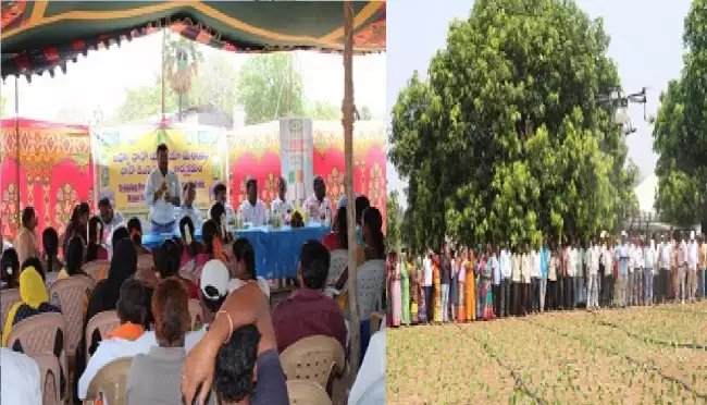 §ֆ:इफको के प्रबंधक, श्री चंद्रन्ना तथा विपणन प्रबंधक, श्री साई कृष्णा ने कृषि उत्पादन बढ़ाने एवं गुणवत्ता में सुधार लाने के उद्देश्य से इफको के नैनो उत्पादों के लाभों के बारे में जानकारी दी। उन्होंने इस बात पर प्रकाश डाला कि कैसे ये नवोन्मेषी उत्पाद फसल की पैदावार और समग्र कृषि उत्पादकता में उल्लेखनीय वृद्धि कर सकते हैं।प्रतिभागियों को लाइव प्रदर्शनों और प्रशिक्षण सत्रों के माध्यम से कृषि प्रथाओं तथा संसाधन प्रबंधन को बढ़ाने के लिए ड्रोन का प्रभावी ढंग से उपयोग कैसे किया जा सकता है, इसकी व्यावहारिक अंतर्दृष्टि प्रदान की गई।इस कार्यक्रम में कुल 213 किसानों एवं कृषक महिलाओं ने भाग लिया।