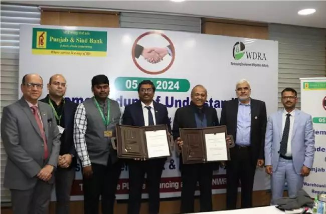 ֆ:ई-एनडब्ल्यूआर (इलेक्ट्रॉनिक नेगोशिएबल वेयरहाउस रसीद) संबंधित फंडिंग के बारे में जागरूकता को बढ़ावा देने के उद्देश्य से इस एमओयू पर हस्ताक्षर किए गए। इस एमओयू का उद्देश्य भारत में कृषि संबंधी वित्त में सुधार हेतु आगे की गतिविधियों के अलावा जमाकर्ताओं को लाभों की जानकारी प्रदान करना है।पीएसबी बिना किसी गारंटी के और आकर्षक ब्याज दर पर ई-एनडब्ल्यूआर के माध्यम से ऋण की पेशकश कर रहा है। कृषि क्षेत्र के अंतर्गत 75 लाख रुपये और अन्य श्रेणी के उधारकर्ताओं के लिए पांच करोड़ रुपये के ऋण दिए जाते हैं।