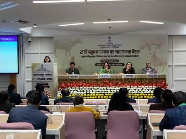 §पशुपालन एवं डेयरी विभाग की सचिव अलका उपाध्याय ने आज नई दिल्ली में राज्यों/केंद्रशासित प्रदेशों के वरिष्ठ अधिकारियों और तकनीकी समिति के सदस्यों के साथ 21वीं पशुधन गणना के लिए संवेदीकरण बैठक की अध्यक्षता की। 21वीं पशुधन गणना के लिए आयोजित संवेदीकरण बैठक के मुख्य बिंदु इस प्रकार हैं।21वीं पशुधन गणना के लिए राज्य/केंद्रशासित प्रदेशों के साथ-साथ पशुपालन और डेयरी विभाग की तैयारियों पर चर्चा और आकलन करना। इस अवसर पर पशुपालन एवं डेयरी विभाग की अपर सचिव सुश्री वर्षा जोशी, पशुपालन आयुक्त सह टीसीडी अध्यक्ष डॉ. अभिजीत मित्रा, पशुपालन एवं मत्स्यपालन विभाग के सलाहकार (सांख्यिकी) श्री जगत हजारिका और केंद्र तथा राज्य सरकारों के प्रमुख सचिव, सचिव, आयुक्त, निदेशक और अन्य वरिष्ठ सदस्यों सहित एनएडी-एमओएसपीआई, पंचायती राज मंत्रालय के प्रतिनिधि भी उपस्थित थे।