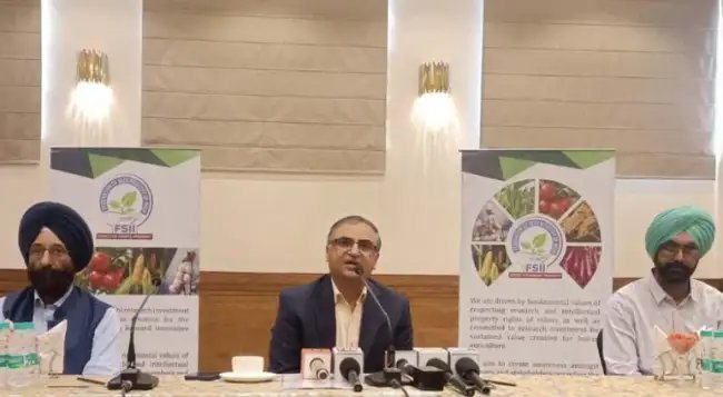ֆ:बीज उद्योग के नेता चंडीगढ़ के जीरकपुर में फेडरेशन ऑफ सीड इंडस्ट्री ऑफ इंडिया (FSII) द्वारा आयोजित एक प्रेस मीट में टिकाऊ चावल उत्पादन के लिए मार्गों पर चर्चा करने के लिए एकत्र हुए थे।