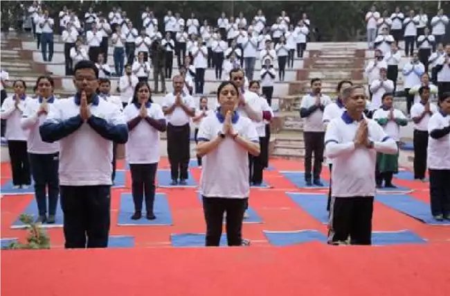 §..आयुष मंत्रालय के मोरारजी देसाई राष्ट्रीय योग संस्थान (एमडीएनआईवाई) ने एमडीएनआईवाई में सामूहिक सूर्य नमस्कार प्रदर्शन का आयोजन किया, जिसमें जीवन के विभिन्न क्षेत्रों से सैकड़ों योग प्रेमियों ने भाग लिया।इस अवसर पर आयुष मंत्रालय के उप महानिदेशक श्री सत्यजीत पॉल और एमडीएनआईवाई की निदेशक श्रीमती विजयलक्ष्मी भारद्वाज भी उपस्थित थीं। इस कार्यक्रम में वरिष्ठ अधिकारियों, कर्मचारियों, एमडीएनआईवाई के छात्रों और योग प्रेमियों ने भी भाग लिया।