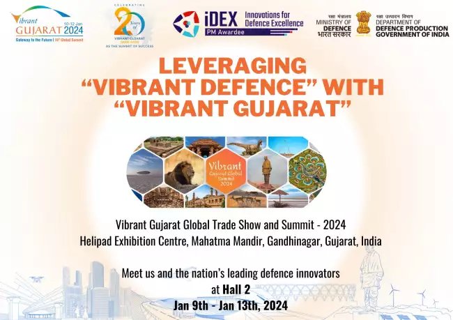 ֆ:वैश्विक शिखर सम्मेलन के दौरान आईडैक्स के प्रमुख रक्षा स्टार्टअप/एमएसएमई वाइब्रेंट गुजरात ग्लोबल ट्रेड शो 2024 में अपने अत्याधुनिक समाधान प्रदर्शित करेंगे। ट्रेड शो ‘टेकेड और ‘विध्वसंक’ डिसरप्टिव टेक्नोलॉजीज’ का प्रदर्शन करेगा। इस दौरान डिजिटल इंडिया स्टैक और उद्योग 4.0, स्मार्ट मैन्युफैक्चरिंग और एआई/एमएल सहित उभरती प्रौद्योगिकियों पर जोर दिया जाएगा।आईडैक्स नई साझेदारियों और सहयोगों की खोज करने, उद्योग जगत के नेताओं, नीति निर्माताओं और नवप्रवर्तकों के साथ सामूहिक रूप से भविष्य की परि‍कल्पना और गुजरात और उससे आगे के जीवंत आर्थिक परिदृश्य में योगदान देने के लिए भी तत्पर रहेगा।