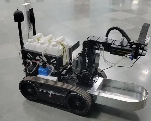 ֆ:जबकि ड्रोन-आधारित कृषि रोबोट लोकप्रियता प्राप्त कर चुके हैं, वे उड़ान के दौरान बनाए गए मजबूर ड्राफ्ट के कारण पौधों की पत्तियों की उच्च-गुणवत्ता वाली छवियों को कैप्चर करने के लिए संघर्ष करते हैं, जिसके परिणामस्वरूप शोर डेटा होता है। इस सीमा को दूर करने के लिए, नव विकसित ग्राउंड-आधारित ट्रैक्ड मोबाइल मैनिपुलेटर सटीक रोग का पता लगाने के लिए कैमरा-आधारित छवि विश्लेषण का उपयोग करता है, इसके बाद उपयुक्त कीटनाशक का स्वचालित छिड़काव होता है।