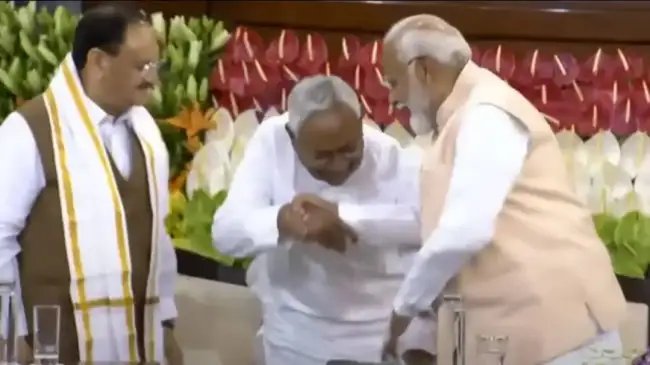 इस गजब के नजारे को देखकर पास खड़े बीजेपी के राष्ट्रीय अध्यक्ष जेपी नड्डा और एनडीए के बाकी नेता भी भौचक्का रह गए।
