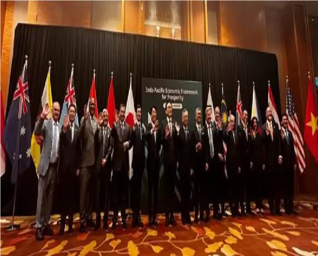 ֆ:आईपीईएफ के सदस्य देशों ने आज इन समझौतों पर हस्ताक्षर किए जो 21वीं सदी की चुनौतियों का समाधान करने और एक महत्वपूर्ण क्षेत्र में आर्थिक जुड़ाव को मजबूत करने के लिए अपनी तरह के पहले दृष्टिकोण हैं। भारत ने हस्ताक्षर की कार्यवाही और मंत्रिस्तरीय विचार-विमर्श में सक्रिय रूप से भाग लिया। हालांकि, भारत ने इन समझौतों पर औपचारिक रूप से हस्ताक्षर नहीं किए क्योंकि घरेलू अनुमोदन प्रक्रियाएं अब भी चल रही हैं जो नई सरकार के गठन के बाद पूरी होंगी। ये समझौते कम से कम पांच आईपीईएफ सदस्य देशों द्वारा अनुसमर्थन, स्वीकृति या अनुमोदन के लिए अपनी आंतरिक कानूनी प्रक्रियाओं को पूरा करने के बाद लागू होंगे।