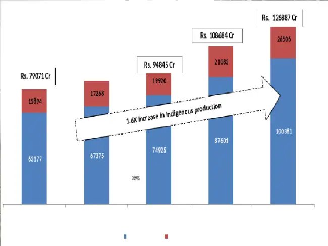 §ֆ:पिछले वर्ष यह आंकड़ा 15,920 करोड़ रुपये का था।पिछले पांच वर्षों के दौरान (2019-20 से), रक्षा उत्पादन का मूल्य लगातार बढ़ता रहा है और इसमें 60 प्रतिशत से अधिक की वृद्धि हुई है।