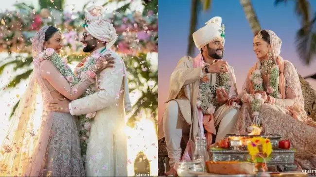 कपल की फर्स्ट फोटोज से साफ है कि ये शादी रॉयल अंदाज में की गई है. रकुल प्रीत सिंह और जैकी भगनानी की शादी पंजाबी और सिंधी रीति-रिवाजों से हुई है. दोनों की आनंद करज और सिंधी सेरेमनी देखने लायक थी. सेरेमनी पूरी होने के बाद कपल पैपराजी से भी रूबरू हुआ.