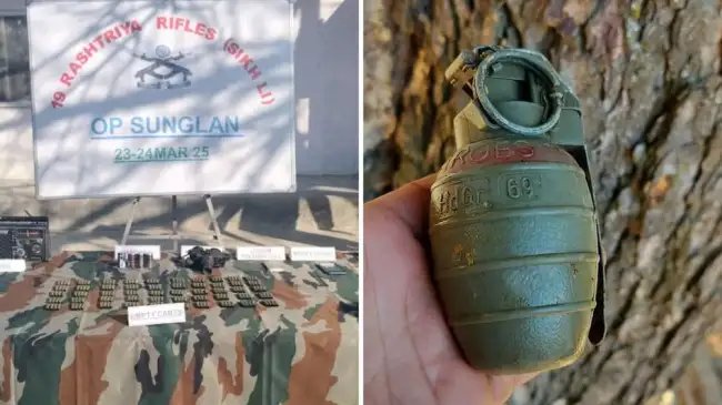 ֍:सेना का सर्च ऑपरेशन जारी §ֆ:आतंकवादियों के एक समूह को बेअसर करने के लिए सुरक्षा बलों ने सोमवार को अपनी तलाशी तेज कर दी, जिसमें एम4 कार्बाइन असॉल्ट राइफलों की कई भरी हुई मैगजीन और कुछ ग्रेनेड समेत आपत्तिजनक सामग्री का जखीरा जब्त किया गया. अधिकारियों ने बताया कि यह अभियान रविवार शाम को हीरानगर सेक्टर में पुलिस महानिदेशक नलिन प्रभात के नेतृत्व में शुरू किया गया था. उन्होंने बताया कि सोमवार सुबह कमांडो, ड्रोन और खोजी कुत्तों की अतिरिक्त तैनाती के साथ इसे और तेज कर दिया गया.§֍:अंतरराष्ट्रीय सीमा पर हाई अलर्ट§ֆ:इस बीच बीएसएफ ने जम्मू में अंतरराष्ट्रीय सीमा पर हाई अलर्ट जारी कर दिया है और अग्रिम चौकियों पर चौकसी बढ़ा दी गई है, क्योंकि खुफिया इनपुट से पता चला है कि आतंकवादी संगठनों की ओर से और अधिक आतंकी घुसपैठ का प्रयास कर सकते हैं.§जम्मू-कश्मीर (Jammu Kashmir) में कठुआ जिले के हीरानगर सेक्टर में तीसरे दिन सर्च ऑपरेशन जारी है. आतंकवादी अभी भी फरार हैं. आज सर्च ऑपरेशन के दौरान 2 चीनी ग्रेनेड मिले हैं. इससे पहले सुरक्षा बलों ने लगातार दूसरे दिन हीरानगर के सानियाल इलाके में घेराबंदी और तलाशी अभियान जारी रखा था. आतंकवादियों की मौजूदगी के बारे में सूचना मिलने के बाद, रविवार रात को सानियाल हीरानगर के सामान्य इलाके में जम्मू-कश्मीर पुलिस और राइजिंग स्टार कोर के जवानों ने संयुक्त अभियान चलाया. कठुआ अभियान में सुरक्षा बलों को कोई बड़ी सफलता नहीं मिली है.