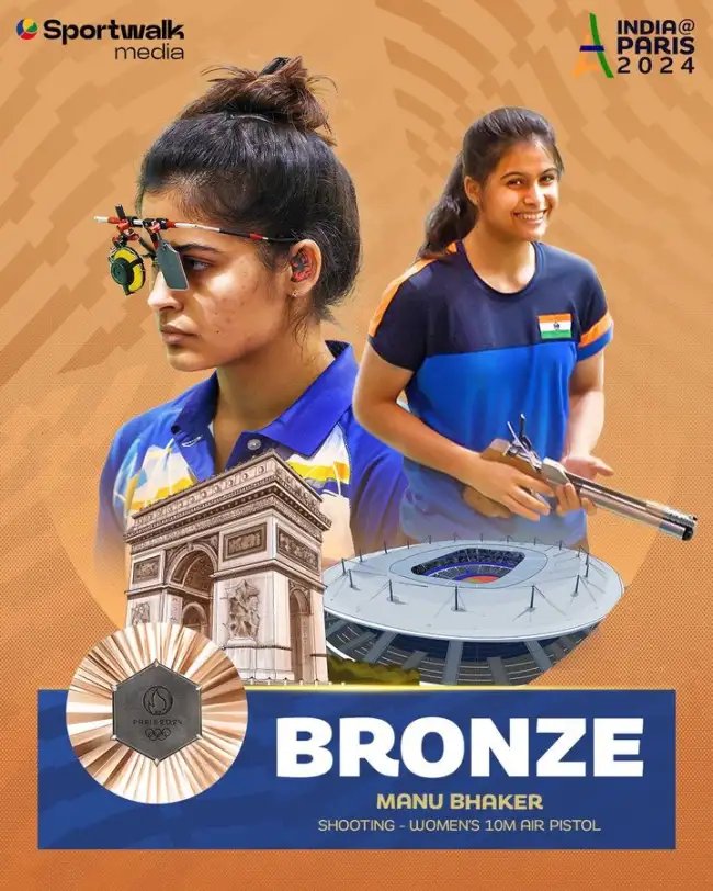 ???????????? ???????????????????????? ????????????????????????????????????????! Manu Bhaker wins India’s first medal at #Paris2024 and what a way to do so! From heartbreak at Tokyo to winning a Bronze at Paris, Manu Bhaker’s redemption story has been wonderful to witness. ???? A superb effort from her and here’s hoping… pic.twitter.com/O7tqOuGFTa