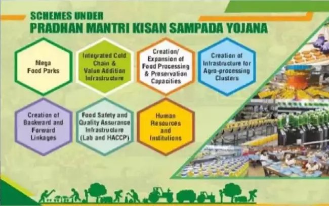 §14वें वित्त आयोग के लिए प्रधानमंत्री किसान सम्पदा योजना का वित्तीय परिव्यय 6,000 करोड़ रुपये था और 15वें वित्त आयोग के लिए यह 4,600 करोड़ रूपये था।खाद्य प्रसंस्करण उद्योग मंत्रालय (एमओएफपीआई) 2018-19 से प्रधानमंत्री किसान सम्पदा योजना के अंतर्गत एक केंद्रीय क्षेत्र योजना- “ऑपरेशन ग्रीन्स” (ओजी) को कार्यान्वित कर रहा है, जिसका लक्ष्य किसानों को प्राप्त होने वाली धनराशि को बढ़ाना और फसल के पश्चात होने वाली हानि को कम करना है। 15वें वित्तीय आयोग चक्र (2021-26) के दौरान, ओजी योजना (दीर्घकालिक हस्तक्षेप) का दायरा तीन फसलों अर्थात् टमाटर, प्याज और आलू (टॉप) से बढ़ाकर 22 खराब होने वाली फसलों अर्थात आम, केला, सेब, अनानास, संतरा, अंगूर, आंवला, अनार, अमरूद, लीची, टमाटर, प्याज, आलू, हरी मटर, गाजर, फूलगोभी, बीन्स, लौकी परिवार {बोतल लौकी (लोकी), करेला (करेला), तुरई/स्पंज लौकी (तोरई) परवल (परवल) और ऐश लौकी (पेठा)}, भिंडी, लहसुन, अदरक और झींगा तक बढ़ा दिया गया है।