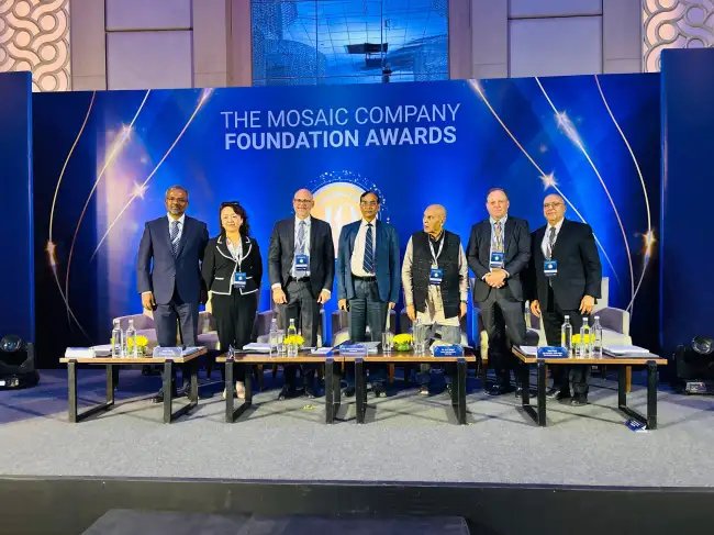 §֍:§ֆ:समारोह में मुख्य अतिथि डॉ. त्रिलोचन महापात्रा, जो कि प्लांट वैरायटीज एंड फार्मर्स राइट्स अथॉरिटी के अध्यक्ष और पूर्व सचिव, कृषि अनुसंधान और शिक्षा विभाग के सदस्य हैं, ने पुरस्कार विजेताओं को बधाई दी और पौध पोषण अनुसंधान के महत्व को बताया. मोजेक कंपनी के अध्यक्ष और सीईओ ब्रूस बोडाइन और एस एम सहगल फाउंडेशन की ट्रस्टी और सीईओ अंजली मखीजा ने भी इस कार्यक्रम में अपने विचार साझा किए. बोडाइन ने कहा, “खाद्य सुरक्षा आज की सबसे बड़ी चुनौती है, और हमें ऐसे वैज्ञानिकों की आवश्यकता है जो टिकाऊ कृषि के लिए नए समाधान प्रस्तुत कर सकें.” मखीजा ने “कृषि ज्योति” परियोजना की सफलता को साझा किया, जो मोजेक कंपनी और सहगल फाउंडेशन की दीर्घकालिक साझेदारी का परिणाम है और जिसने 273 गांवों में 8 लाख ग्रामीणों के जीवन को बदलने में मदद की है.§1 अप्रैल को मोजेक कंपनी फाउंडेशन फॉर सस्टेनेबल फूड सिस्टम और एसएम सहगल फाउंडेशन ने मिलकर हरियाणा के ली मेरिडियन होटल में एक विशेष समारोह का आयोजन किया. इसमें पौध पोषण में सबसे अव्वल खोज को सम्मानित करने के लिए मोजेक कंपनी फाउंडेशन अवार्ड्स फॉर प्लांट न्यूट्रिशन रिसर्च की दसवीं वर्षगांठ मनाई गई. यह पुरस्कार पौध पोषण के क्षेत्र में विज्ञान, नवाचार और जागरूकता को बढ़ावा देने के लिए महत्वपूर्ण योगदान देने वालों को दिया गया.
