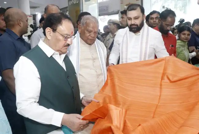 ֆ:पूज्य बापू की जयंती के अवसर पर केंद्रीय स्वास्थ्य व परिवार कल्याण तथा रसायन व उर्वरक मंत्री श्री जे.पी. नड्डा, केंद्रीय एमएसएमई मंत्री श्री जीतन राम मांझी, केंद्रीय एमएसएमई और श्रम व रोजगार राज्य मंत्री सुश्री शोभा कलंदलाजे समेत केवीआईसी अध्यक्ष श्री मनोज कुमार और कई गणमान्य लोगों ने परंपरा के अनुसार बाबा खड़क सिंह मार्ग स्थित खादी भवन में खरीददारी कर गांधी जयंती के अवसर पर खादी उत्पादों पर शुरू होने वाली विशेष छूट का शुभारंभ किया। केंद्रीय मंत्री श्री जे.पी नड्डा ने खादी के कुर्ते का कपड़ा और ग्रामोद्योग उत्पाद खरीदे और ऑनलाइन माध्यम से भुगतान किया। मीडिया को संबोधित करते हुए उन्होंने देशवासियों से खादी के उत्पाद खरीदने की अपील की। इस अवसर पर केंद्रीय मंत्री एमएसएमई श्री जीतन राम मांझी ने भी मीडिया के माध्यम से जनता से अपील की कि वो खादी और स्वदेशी उत्पादों को अपनाएं और आत्मनिर्भर अभियान का हिस्सा बने।