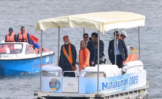 §प्रधानमंत्री नरेंद्र मोदी ने बुधवार क प्रयागराज में हो रहे महाकुंभ में पहुंचे. यहां उन्होंने गंग, यमुना और अदृश्य संगम की त्रिवेणी में आस्था की डुबकी लगाई . उन्होंने पूरे विधि-विधान से मां गंगा की पूजी की और षोडशोपचार विधि से भागीरथी की पूजन कर दुग्ध और पुष्प समेत नैवैद्य अर्पित किया. इस दौरान उत्तर प्रदेश के मुख्यमंत्री योगी आदित्यनाथ भी मौजूद रहे. पीएम मोदी ने केसरिया वस्त्र और ऊपर से रुद्राक्ष की माला धारण करके पीएम ने स्नान किया.त्वमेव मूलप्रकृतिस्त्वं हि नारायणः प्रभुः।