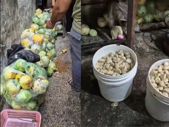 वीडियो में यह भी देखा जा सकता है कि कुछ पत्ता गोभी सीढ़ियों पर खुले में फेंकी गई है. कई दिनों से रखे जाने की वजह पत्ता गोभी पूरी तरह से पीली भी हो चुकी है. इसके अलावा खाने का कुछ सामान बाथरूम में भी है. जबकि जिस बर्तन में मोमोज और स्प्रिंग रोल रखे गए हैं, वे धुले हुए भी नहीं हैं.