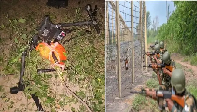 ֍:पंजाब सीमा पर मिला ड्रोन और हथियार §ֆ:इस घटना ने सीमा पार से अवैध गतिविधियों की आशंका को और गहरा कर दिया है. बीएसएफ और पंजाब पुलिस को ड्रोन की मौजूदगी के बारे में खुफिया जानकारी मिली थी. इस सूचना के आधार पर दोनों बलों ने तुरंत एक साझा तलाशी अभियान शुरू किया.