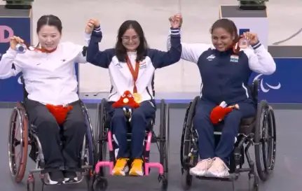 #WATCH | Jaipur, Rajasthan: Indian Paralympian shooter Mona Agarwal won a bronze medal in the Women’s 10m air rifle event at #ParisParalympics2024.