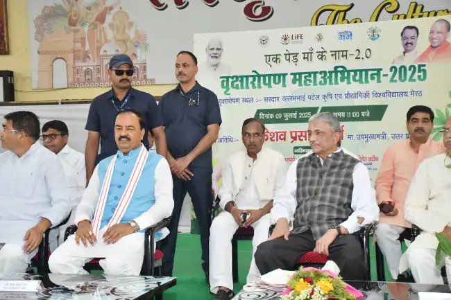 सरदार वल्लभभाई पटेल कृषि एवं प्रौद्योगिकी विश्वविद्यालय, मेरठ में “एक पेड़ मां के नाम” अभियान के दूसरे चरण की शुरुआत उत्तर प्रदेश के उपमुख्यमंत्री केशव प्रसाद मौर्य ने पौधारोपण कर की। इस अवसर पर उन्होंने बच्चों, महिलाओं, जनप्रतिनिधियों और उपस्थित लोगों को “रक्षा रोपण” की शपथ दिलाई और पर्यावरण संरक्षण में सक्रिय भागीदारी की अपील की।