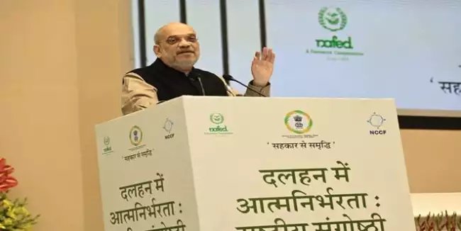 ֆ:उन्होंने कहा कि कई बार दलहन उत्पादक किसानों को सटोरियों या किसी अन्य स्थिति के कारण उचित दाम नहीं मिलते थे, जिससे उन्हें बड़ा नुकसान होता था। इसके कारण वे किसान दलहन की खेती करना पसंद नहीं करते थे। हमने निश्चित कर लिया है कि जो किसान उत्पादन करने से पूर्व ही पोर्टल पर रजिस्ट्रेशन कराएगा, उसकी दलहन को एमएसपी पर शत-प्रतिशत खरीद कर लिया जाएगा। इस पोर्टल पर रजिस्टर करने के बाद किसानों के दोनों हाथों में लड्डू होंगे। फसल आने पर अगर दाम एमएसपी से ज्यादा होगा तो उसकी एवरेज निकाल कर भी किसान से ज्यादा मूल्य पर दलहन खरीदने का एक वैज्ञानिक फार्मूला बनाया गया है और इससे किसानों के साथ कभी अन्याय नहीं होगा। शाह ने किसानों से अपील की कि वे पंजीयन करें, प्रधानमंत्री मोदी की गारंटी है कि सरकार उनकी दलहन खरीदेगी, उन्हें बेचने के लिए भटकना नहीं पड़ेगा।उन्होंने विश्वास जताया कि देश को आत्मनिर्भर बनाने में किसान कोई कसर नहीं छोड़ेगा। देश का बहुत बड़ा हिस्सा आज भी शाकाहारी है, जिनके लिए प्रोटीन का बहुत महत्व है, जिसका दलहन प्रमुख स्रोत है। कुपोषण के खिलाफ देश की लड़ाई में भी दलहन उत्पादन का बहुत महत्व है। भूमि सुधार हेतु भी दलहन महत्वपूर्ण फसल है, क्योंकि इसकी खेती से भूमि की गुणवत्ता बढ़ती है। भूजल स्तर को बनाए रखना और बढ़ाना है तो ऐसी फसलों का चयन करना होगा, जिनके उत्पादन में पानी कम इस्तेमाल हो, दलहन इनमें है। दलहन एक प्रकार से फर्टिलाइजर का एक लघु कारखाना आपके खेत में ही लगा देती है। उन्होंने कहा कि वेयरहाउसिंग एजेंसियों के साथ इस ऐप का रियल टाइम बेसिस पर एकीकरण करने का प्रयास किया जा रहा है। आने वाले दिनों में वेयरहाउसिंग का बहुत बड़ा हिस्सा प्रधानमंत्री मोदी की सरकार के कारण कोऑपरेटिव सेक्टर में आने वाला है। हर पैक्स एक बड़ा वेयरहाउस बनाने की दिशा में आगे बढ़ रहा है, इससे फसलों को दूर भेजने की समस्या का समाधान हो जाएगा। उन्होंने किसानों से दलहन अपनाने व देश को 1 जनवरी 2028 से पहले दलहन में आत्मनिर्भर बनाने की अपील की, ताकि देश को 1 किलो दलहन भी इंपोर्ट नहीं करना पड़े।