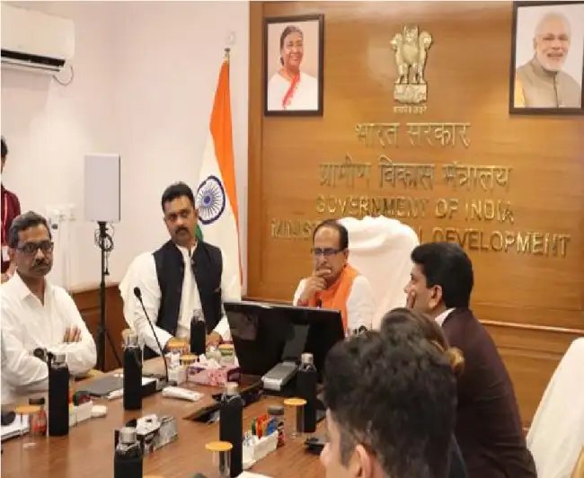§ग्रामीण विकास एवं कृषि एवं किसान कल्याण मंत्री श्री शिवराज सिंह चौहान ने ग्रामीण विकास मंत्रालय की विभिन्न योजनाओं की आगामी 100 दिनों की कार्य योजना पर कल शाम बैठक की। ग्रामीण विकास मंत्री ने आगामी 100 दिनों की कार्य योजना को सशक्त और प्रभावी रूप से कार्यान्वित करने पर ज़ोर दिया। उन्होनें कहा कि हम सबको मिलकर पूरी ताकत से, ग्रामीण विकास की हर योजना पर काम करना होगा तभी प्रधानमंत्री श्री नरेंद्र मोदी का विकसित भारत का सपना पूरा होगा।