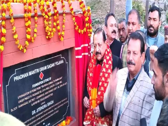 ֆ:मंत्री ने कहा कि प्रधानमंत्री श्री नरेन्द्र मोदी के नेतृत्व में पहाड़ी जिले उधमपुर के सुदूरवर्ती क्षेत्रों में सड़क संपर्क सुनिश्चित किया गया है। डॉ. सिंह ने याद दिलाया कि पीएमजीएसवाई तत्कालीन प्रधानमंत्री श्री अटल बिहारी वाजपेयी के तहत शुरू हुई थी, लेकिन अगले 15 वर्षों में 2014 तक, देश में निर्मित पीएमजीएसवाई सड़कों की कुल लंबाई लगभग 3.7 लाख किलोमीटर थी, जबकि पिछले साढ़े नौ वर्षों में प्रधानमंत्री मोदी के कार्यकाल में कुल लंबाई दोगुनी होकर 8 लाख किलोमीटर से अधिक हो गई है। डॉ. जितेंद्र सिंह ने कहा, उधमपुर देश के सभी जिलों में पहली तीन शीर्ष पीएमजीएसवाई सड़क परियोजनाओं में शामिल हो गया है।