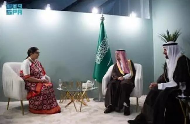 §ֆ: सम्मेलन के मौके पर हुई एक अलग बैठक में महिला एवं बाल विकास एवं अल्पसंख्यक कार्यमंत्री स्मृति जुबिन ईरानी और विदेश राज्य और संसदीय कार्य राज्य मंत्री, श्री वी. मुरलीधरन और मक्का क्षेत्र के डिप्टी गर्वनर हिज रॉयल हाइनेस (एच.आर.एच) प्रिंस सऊद बिन मिशाल बिन अब्दुलअज़ीज़ अल सऊद के साथ विचार विमर्श हुआ। इस दौरान सऊदी अरब के हज और उमराह मंत्री, एच.ई. डॉ. तौफीक बिन फ़ौज़ान अल रबिया भी उपस्थित थे। इस बैठक में वर्ष 2024 में भारतीय हज यात्रियों को प्रदान की जाने वाली सुविधाओं और सेवाओं में सुधार के लिए सऊदी अरब के साथ अधिक सहयोग और सहभागिता पर चर्चा हुई।