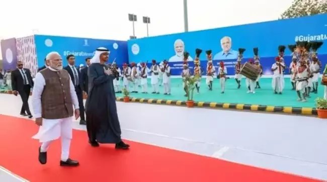 §֍:प्रधानमंत्री मोदी और यूएई के राष्ट्रपति की द्विपक्षीय बैठक§ֆ:पीएम नरेन्द्र मोदी और संयुक्त अरब अमीरात (यूएई) के राष्ट्रपति मोहम्मद बिन जायद अल नाहयान ने मंगलवार को द्विपक्षीय बैठक की और दोनों देशों के बीच तेजी से बढ़ रही द्विपक्षीय साझेदारी की सराहना की. अधिकारियों ने यह जानकारी दी. उन्होंने बताया कि दोनों नेताओं की मौजूदगी में भारत और यूएई के बीच चार समझौता ज्ञापनों पर हस्ताक्षर किए गए, जिनमें से एक गुजरात सरकार और दुबई स्थित बहुराष्ट्रीय लॉजिस्टिक्स कंपनी डीपी वर्ल्ड के बीच हुआ करार शामिल है. मोदी और अल नाहयान के बीच गत सात महीने से भी कम समय में यह चौथी मुलाकात थी.