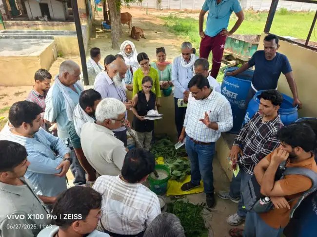 डॉ. जय प्रकाश, वैज्ञानिक (पशुपालन) ने बताया कि प्राकृतिक खेती के लिए पशुओं का प्रबंधन एवं उपचार भी प्राकृतिक औषधीय के द्वारा होना चाहिए जैसे पशुओं के चारे में नीम की पत्तियों के प्रयोग से कृमि नाशक का नियंत्रण, थनैला रोग के रोकथाम के लिए हल्दी और देसी धी के मिश्रण का प्रयोग, पशुओं में पाचन तंत्र को मजबूत करने के लिए काली मिर्च, गुड़, लौंग, लहसुन एवं हींग आदि का प्रयोग के साथ साथ किसानों को पशुओं के आहार प्रबंधन एवं रखरखाव की विस्तृत जानकारी दी। श्री कैलाश, विशेषज्ञ (कृषि प्रसार) ने किसानों से प्राकृतिक खेती के लिए किसानों को समूह बनाना, गुणवत्ता युक्त उपज, प्राकृतिक उत्पादों का प्रमाणीकरण व विपणन एवं डिजिटल मार्केटिंग चैनल आदि के बारे में अवगत करवाया एवं श्री बृजेश कुमार, विशेषज्ञ (मृदा विज्ञान) ने मृदा परीक्षण का महत्व एवं नमूना एकत्रित करने की विधि आदि के बारे विस्तृत जानकारी दी। साथ ही श्री रवीन्द्र कुमार, कृषि प्रसार अधिकारी, दिल्ली सरकार ने प्राकृतिक विधियों के माध्यम से फसल उत्पादन की विभिन्न तकनीकों को साझा करते हुए दिल्ली क्षेत्र में चलाई जा रही क्लस्टर आधारित प्राकृतिक खेती, सामुहिक खेती एवं समूह में आकर मार्केटिंग करने के बारे में विस्तृत जानकारी साझा की एवं श्री योगेन्द्र छिक्कारा, कृषि प्रसार अधिकारी, दिल्ली सरकार ने भारत सरकार की विभिन्न योजनाओं के बारे में अवगत करवाया।